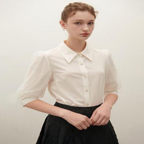 [샤틴]진주 포인트 퍼프 블라우스/S253B253