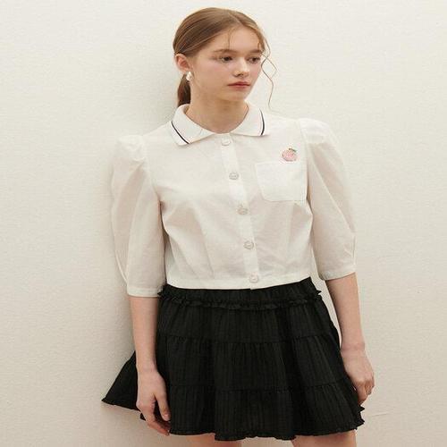 [샤틴]이중프릴 플리츠 카라 ,소매 블라우스S253B252A03