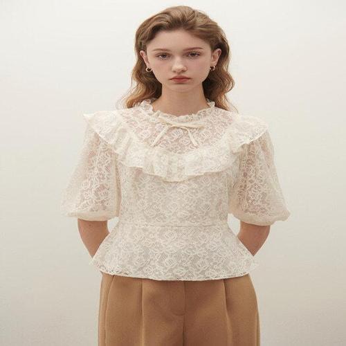 [샤틴]소매볼륨 레이스 블라우스/S253M252