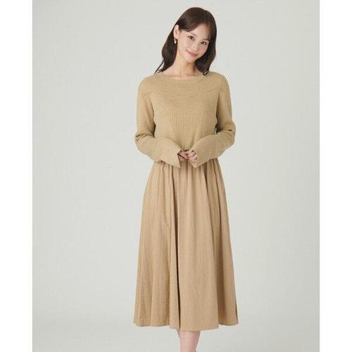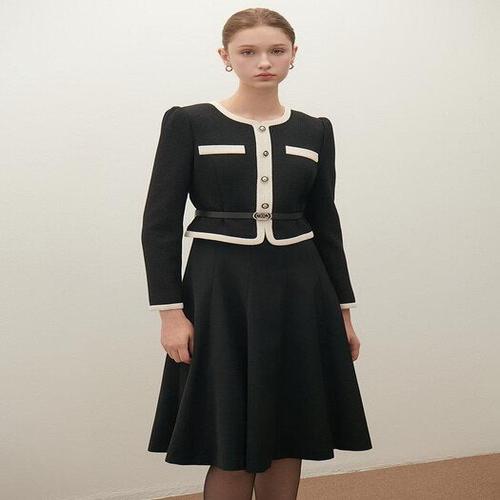 [샤틴]트위드 배색 니트 카라 원피스/S244B656