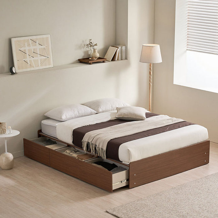 르젠 원목 서랍형 트윈 침대프레임 2개 협탁(월넛)