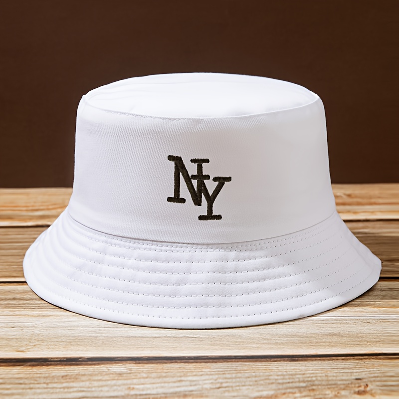 TEMU 남녀공용 조절 가능한 NY 자수 버킷햇 - 흰색 대비 트럭커 캡, 통기성 아웃도어 낚시 캠핑 비치 모자, 남녀 공용 봄 여름 캐주얼 선물, 스타일리쉬캠퍼 액세서리, 내구성 있는 원단, 패션 애호가를 위한 헤드웨어|벙거지모자|여름모자|남자모자