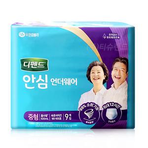 유한킴벌리 디펜드 안심 언더웨어 성인용 팬티 기저귀 중형 9개입 x 8팩
