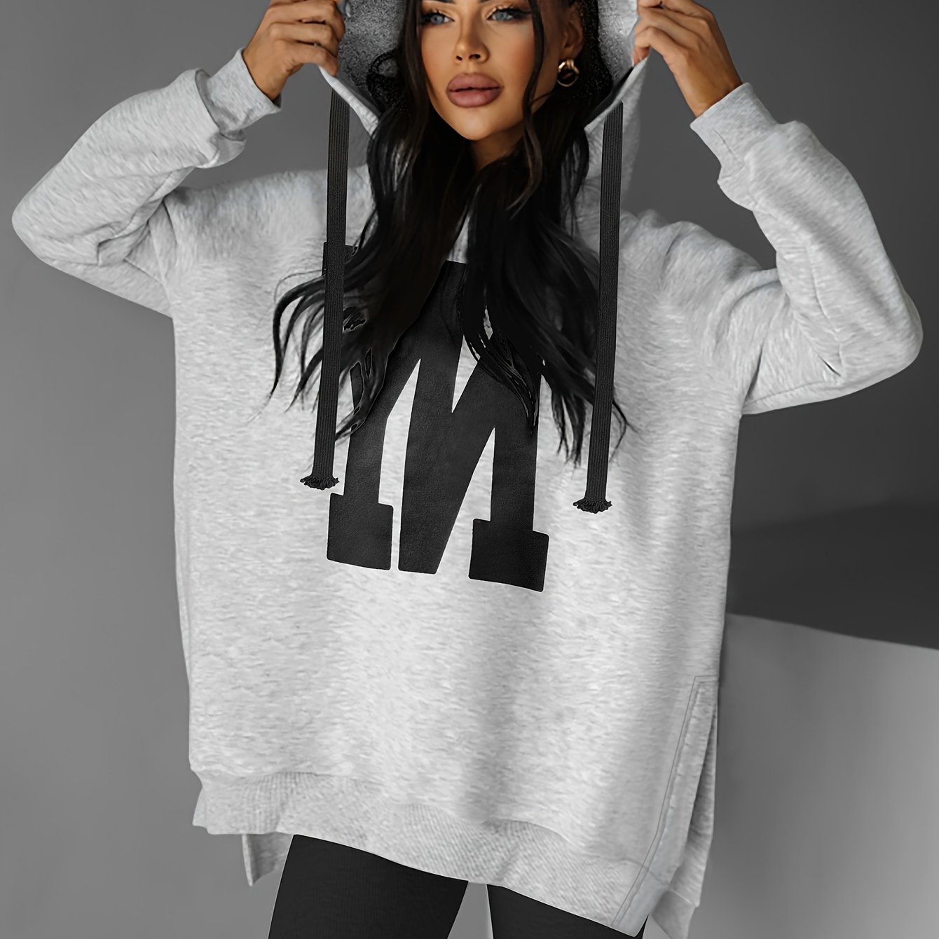 TEMU 솔리드 컬러 운동 캐주얼 긴팔 드로스트링 후드 스웨트셔츠, 여성 의류