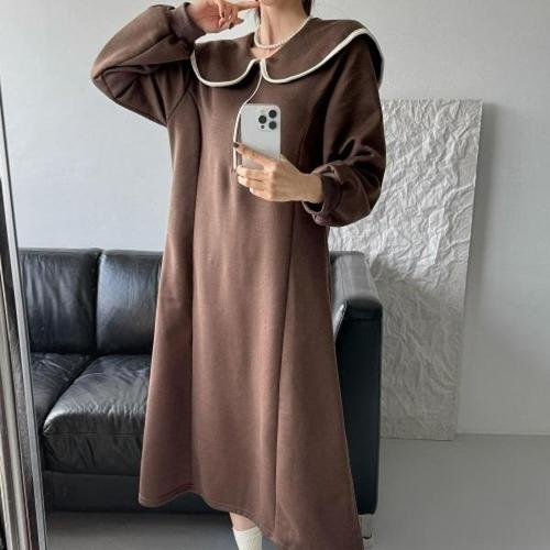 [행복여] 로로 배색 빅 세라 카라 루즈핏 기모 원피스