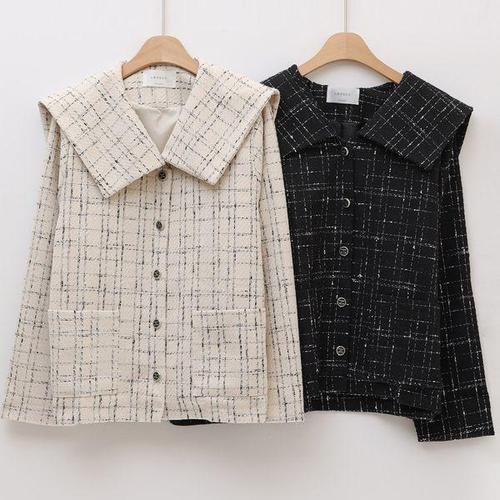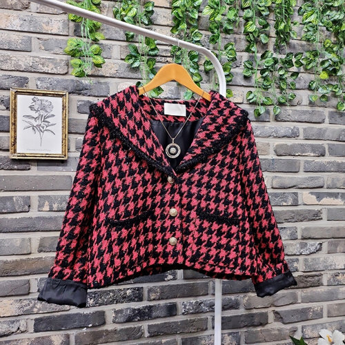 퐁당 / 하운드 체크 둥근 세라카라 트위드 자켓