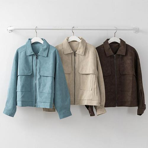 슈퍼인 여성 가을 숏 자켓 캐주얼 브라운 라이크 스웨이드 코트