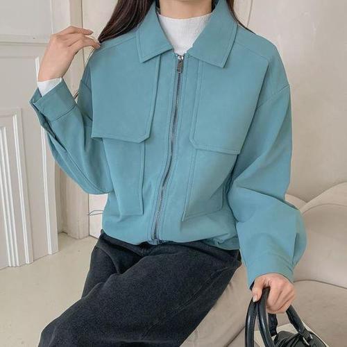[다잇템_패션]여자 집업 주머니 카라넥 환절기 세무 자켓