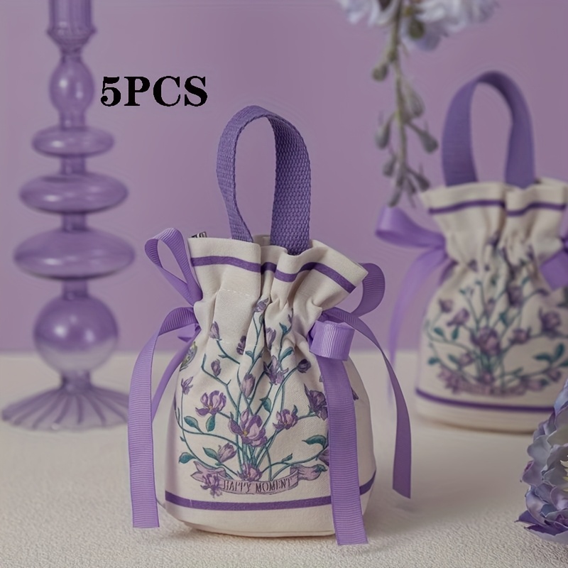 TEMU 그녀/그를 위한 선물 레트로 플로럴 파티 巾끈 주머니 5개 세트 및 신선한 웨딩 사탕 선물 가방