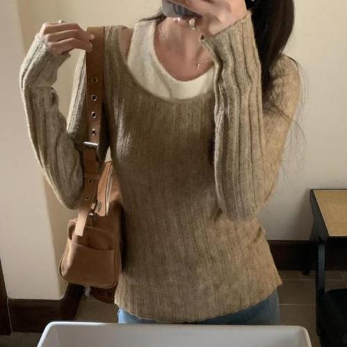 [미라클세븐][M7] 여자 트임 언발 필기체 빅사이즈 U넥 니트