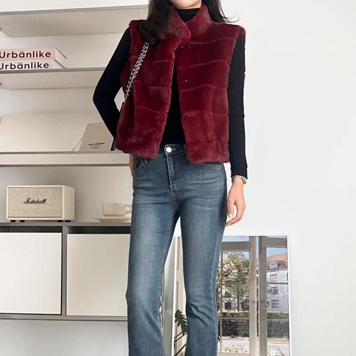 [미라클세븐]여성용 겨울 시즌 파티룩 스트라이프 부드러운 인조밍크 베스트