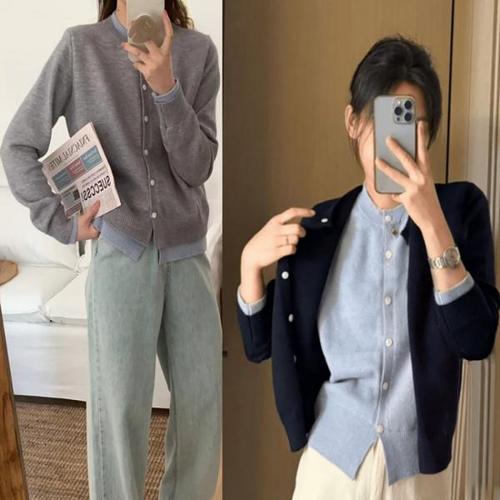 [미라클세븐][M7] 여자 U넥 레이어드룩 베이직 가디건