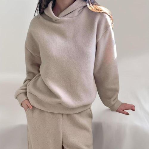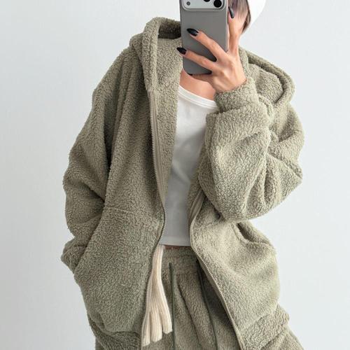 [미라클세븐]여성용 겨울 양털 후드 집업과 루즈한 와이드 팬츠 세트
