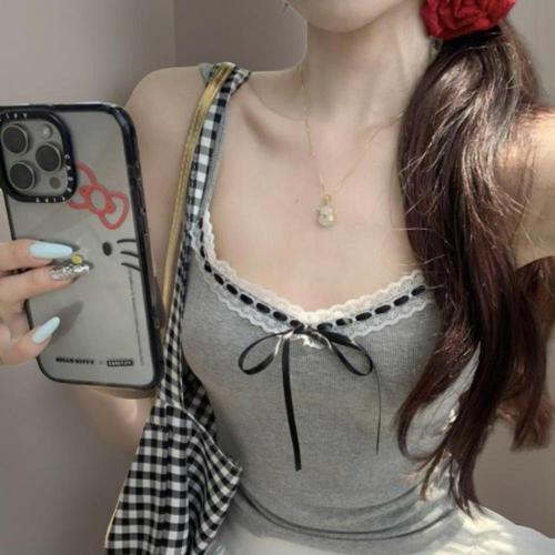 [미라클세븐]여성 여름 레이스 캡 내장 골지 리본 나시탑