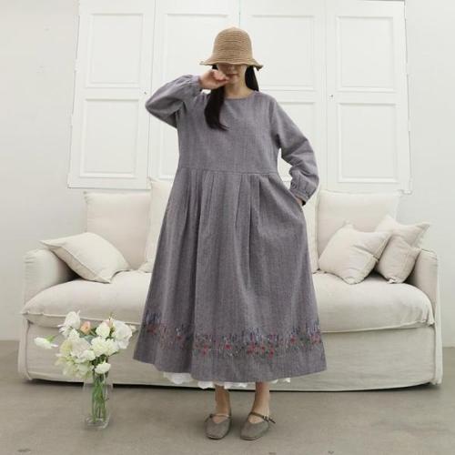 [미라클세븐][M7] 여성 실버세대 들꽃자수 가을모임룩 롱원피스