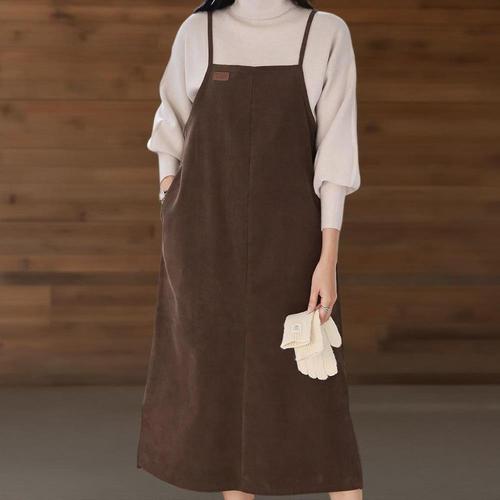 [미라클세븐]여성용 겨울 코듀로이 라벨 기모 빅사이즈 끈 롱드레스