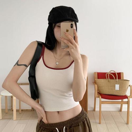 [미라클세븐][M7] 여성 캐쥬얼 캡내장 골지 짧은 어깨끈 나시