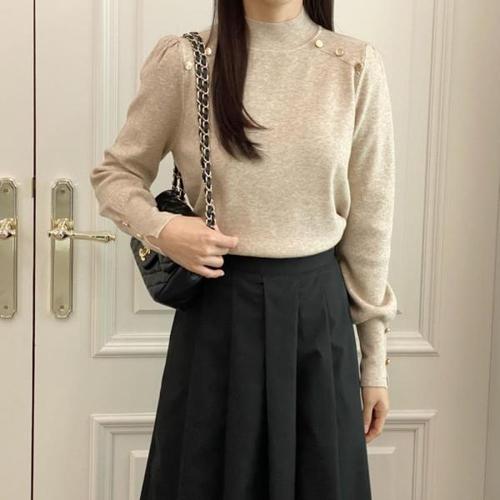 [미라클세븐][M7] 여자 모크넥 가을하객니트 금장단추 티셔츠