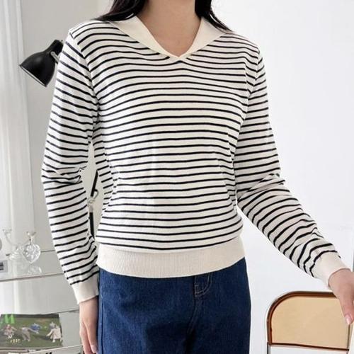 [엄지척]여성 스트라이프 니트 1P 세일러 카라 티셔츠_19679270_667501