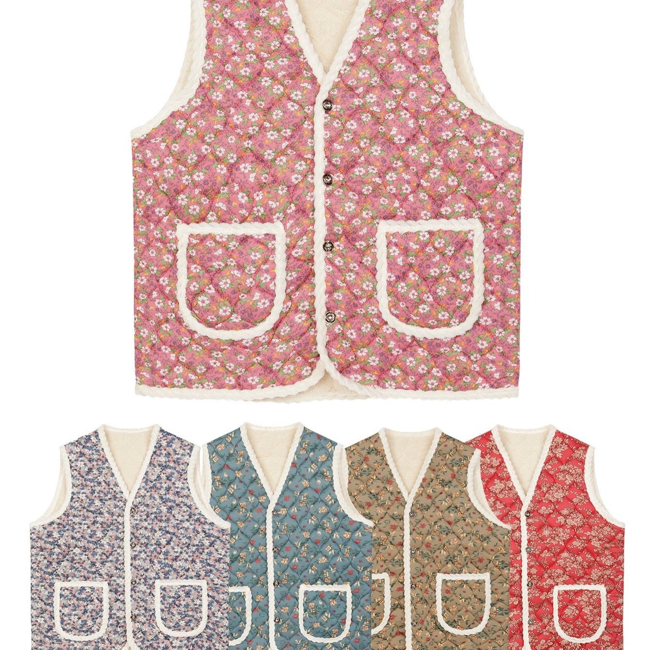 TEMU 파라고나 겨울 꽃무늬 김장조끼 촌캉스 보아 누빔조끼