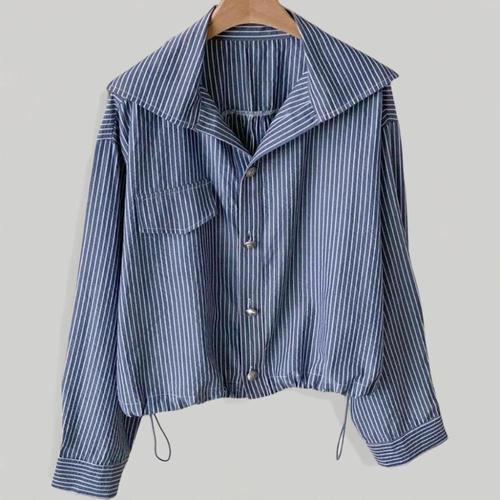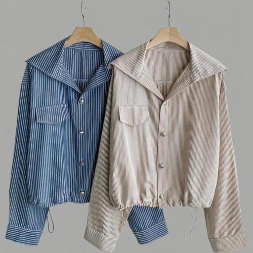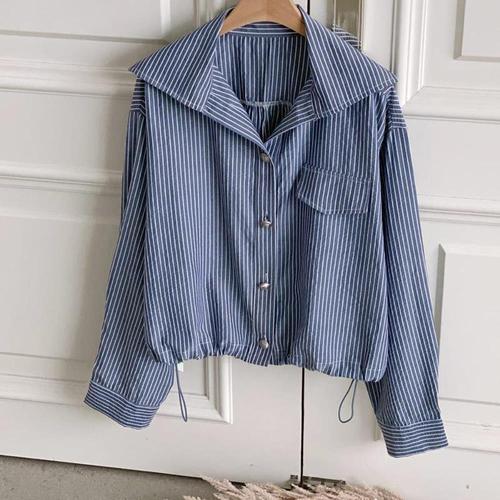 [신상오픈런]여성 스트라이프 포켓 셔츠 세일러 카라 스트링 블라우스