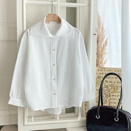 메이킹유 셔츠 남방 빅카라 프릴 화이트블 루즈핏 2005하니블라우스