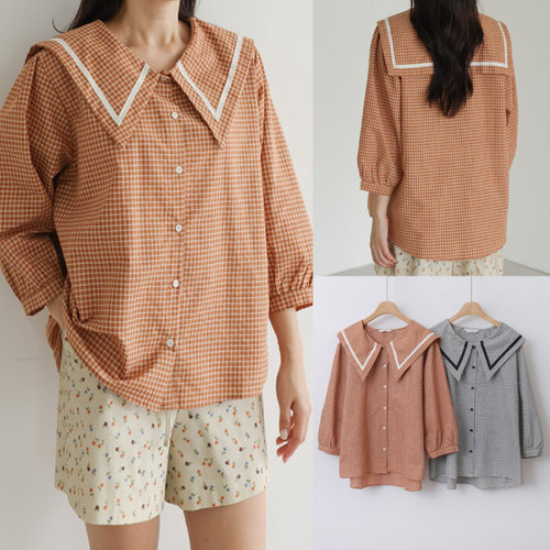 [르샵]체크 세일러 카라 반팔 블라우스 (DP2BA020A)