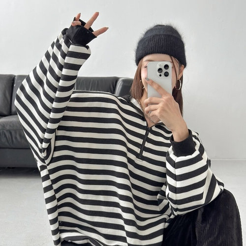 [국내생산 면 100%] 하르린 루즈핏 캘러 쭈리 여성 맨투맨 긴팔