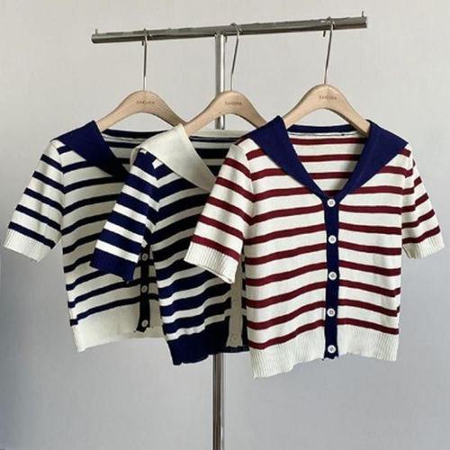 [에이치플러스몰]스트라이프니트 데일리룩 세일러카라 반팔니트 니