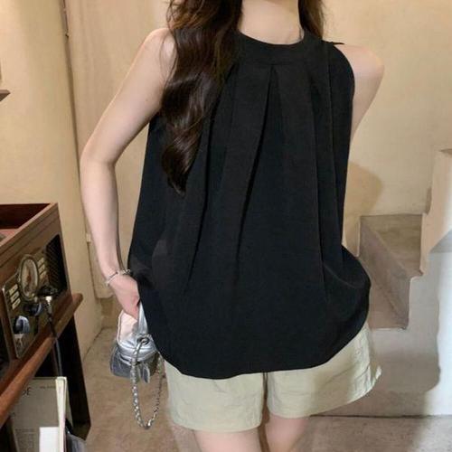 여성 쉬폰 민소매 여자 여름 반티 반팔티