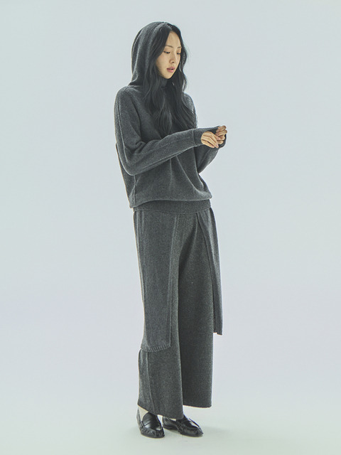 [세컨스킨] 3D니트 루즈핏 후드 긴팔 탑