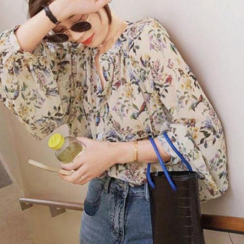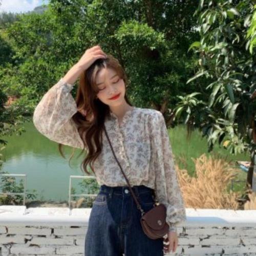 [신상오픈런]여성 플라워 쉬폰 긴팔 블라우스 루즈핏