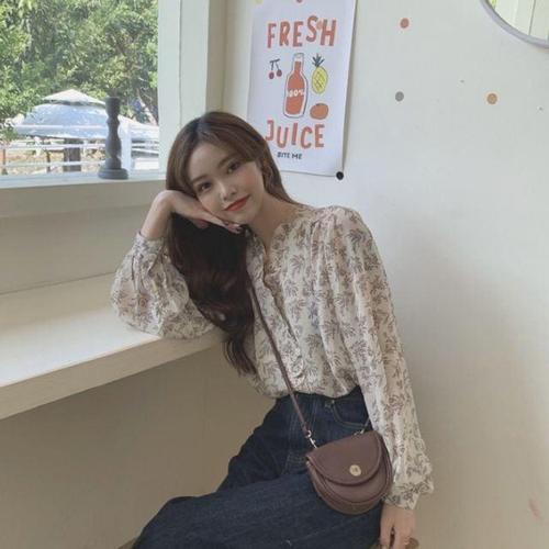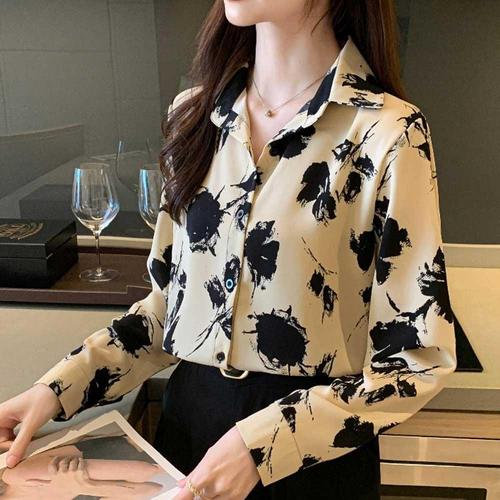 [에이치플러스몰]가을 루즈핏 쉬폰 긴팔 블라우스 봄 플라워 여름 여성
