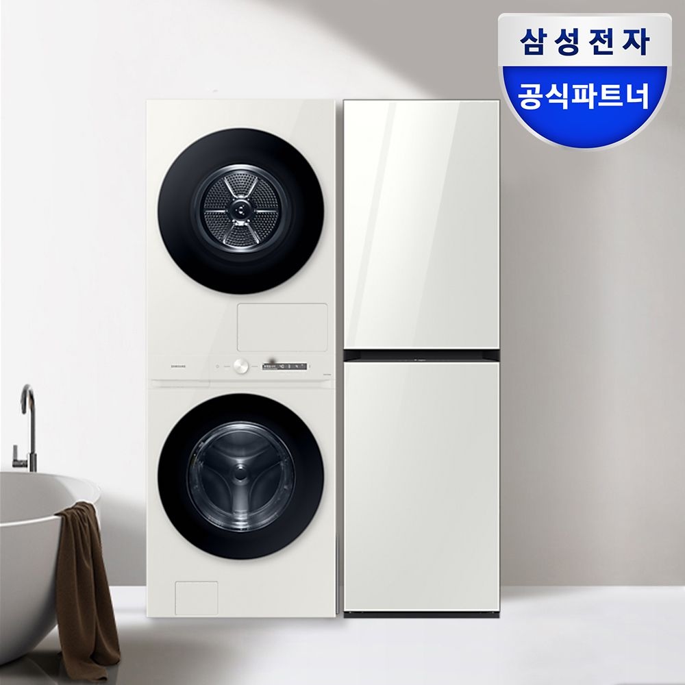 삼성전자 BESPOKE 그랑데 AI 원바디 Top Fit 세탁기 + 건조기 세트 WF2522HDRRP 25kg + 22kg 방문설치, 새틴 아이보리, WF2522HDRRP