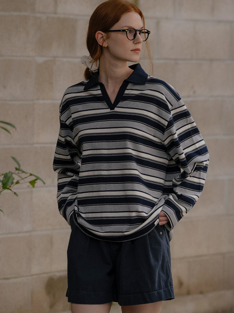[노운베러] 스트라이프 오버핏 칼라 롱슬리브 긴팔티셔츠_세컬러