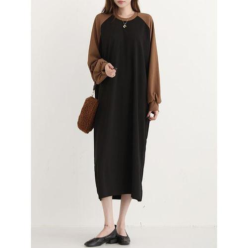 [시크루즈]앨비 나그랑 배색 베이직 롱 원피스_BDOP047