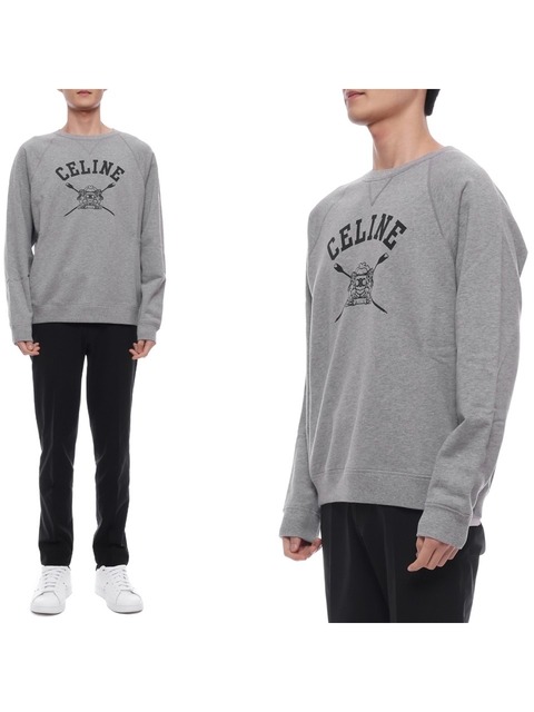 셀린느 로고 디테일 리브 헴 크루넥 맨투맨 RY0SE1233 GGY6