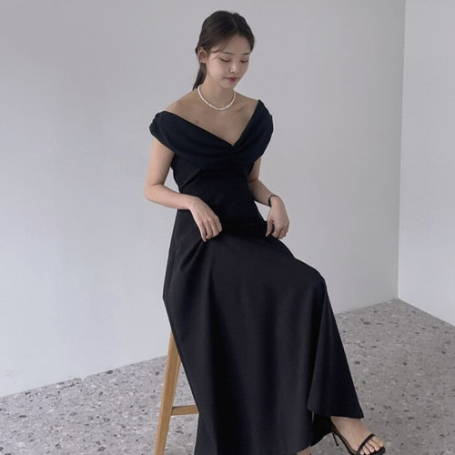 [르뚜앙]다가점 오프숄더 브라이덜샤워 블랙 벨라인 롱원피스 웨딩드레스 셀프웨딩 2부 본식 피로연 이브..