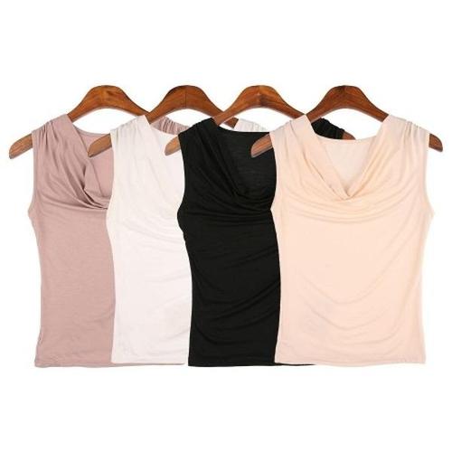 [신상오픈런]여자 레이온 스판 라운드넥 핀턱 셔링 민소매 티셔츠