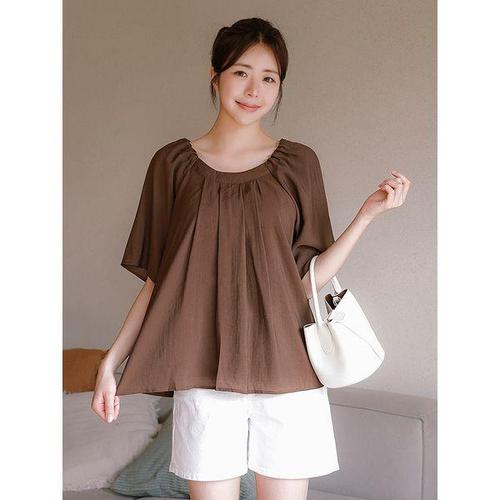 [엄지척]반팔 블라우스 루즈핏 브이넥 여름 셔링_19645426_667501