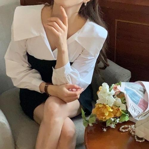 [HYIJS1QT_4B]F006436_랩스타일 뒷밴딩 셔츠 정장원피스