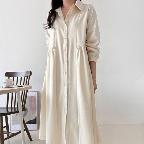 비지트인뉴욕 플레어 셔츠형 롱 원피스 (V61OP01)