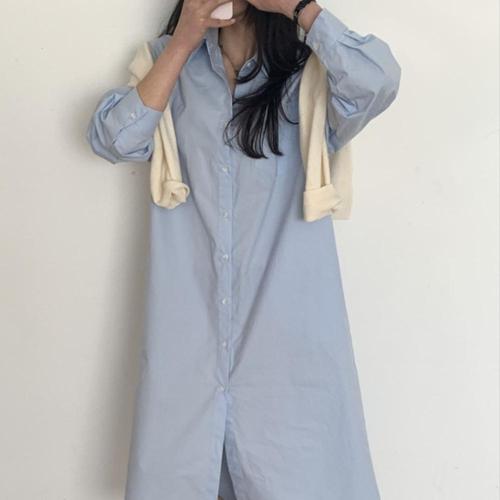 [옷자락] [시즌오프]20대 탄탄코튼 원포켓 롱 셔츠 원피스_5