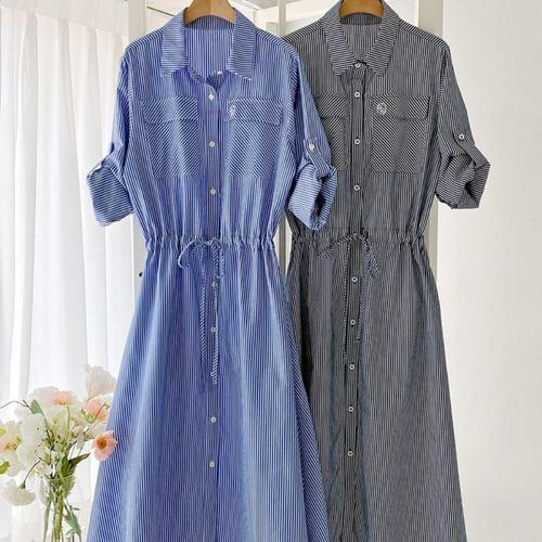 [옷자락] [시즌오프]스트라이프 더블포켓 셔츠 롤업 롱 원피스_5