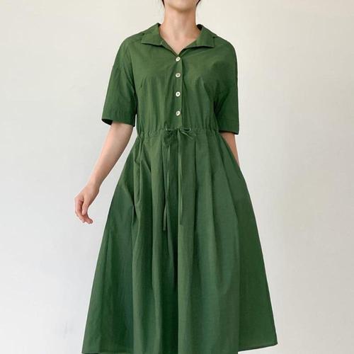 [옷자락] [시즌오프]여름 그린 브라운 셔츠 플레어 스트링 롱원피스_5