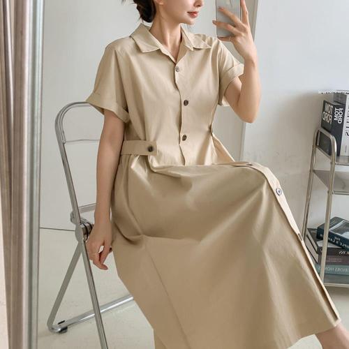 [옷자락] [시즌오프]여름원피스하객룩 롱셔츠 비조 롤업반팔 롱원피스_5