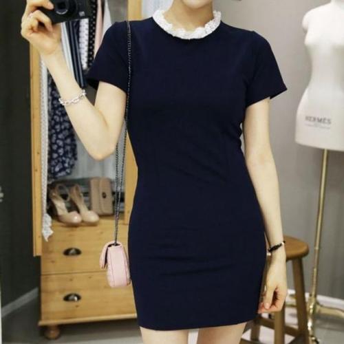 슬림소녀 여성 봄가을 라운드넥 리본 슬림 캐주얼 심플핏 긴팔 원피스 짧은 데일리 빅사이즈 오프숄더 스커트 40-100KG