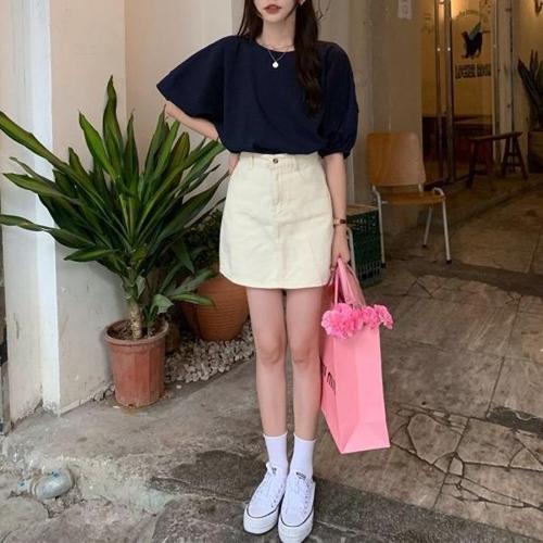 [하프클럽/]데일리룩 단색 릴랙스핏 깔끔퍼프소매 스테디 원피스룩