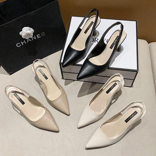 [신상오픈런]여성용 가죽 미들힐 오픈토 사각코 여름 신발 (33435047)