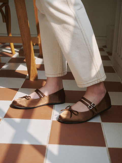 [솔트앤초콜릿] 라운드 토 샤틴 리본 메리제인 플랫 412435004 (1cm)